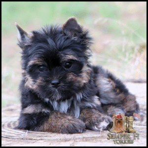 Ginger is a gold parti girl and a second generation Semper Fi puppy! From her beautiful grandmother (and who she was named after) to her spirited mother, Ginger comes from wonderful lines. She has a straight silky coat, small kittenish ears and a perfect little prance that would make any Yorkie proud! While she’s still a puppy and we can’t wait to see what the third generation will produce, we’re just going to love on our beautiful puppy for awhile longer!