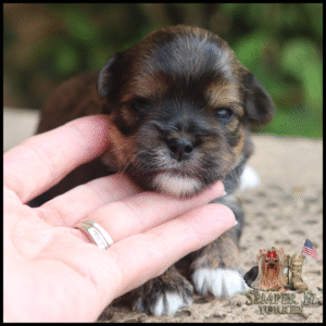 Goldie is a gorgeous Sable girl that carries chocolate and parti. She has big, expressive eyes and a nice small muzzle. She is a Semper Fi baby from a breeding between Ivory and Blade, and her exceptional breeding shows. She has an amazing personality, just like her mom, dad, grandma and great grandma! It’s one of the things I breed for. Between looks, personality and color, she is an amazing girl that is going to make some amazing puppies sometime next year.