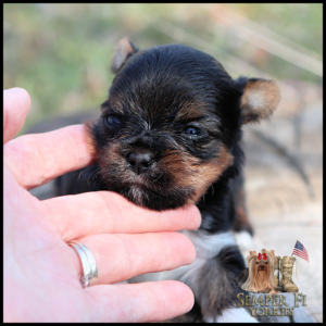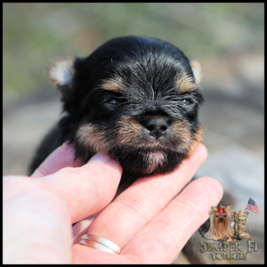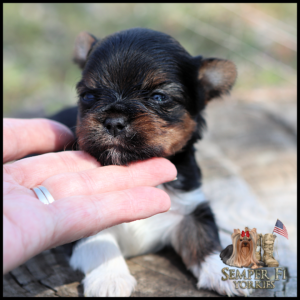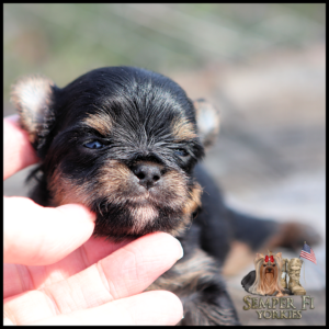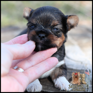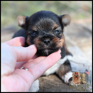 Wilson is an ADORABLE traditional boy that was the last to open his eyes, hence why they’re still a bit squinty. He is a tiny guy with itty bitty ears, and while you can’t tell, he is big, beautiful eyes. While I am taking deposits now, he won’t be available to go home until he is 11-13 weeks old. He will have 2 vet visits with 2 age appropriate shots, a negative fecal, and go home with everything he will need to make his transition as easy for him and his new fur parents as possible.