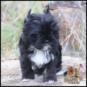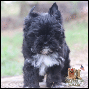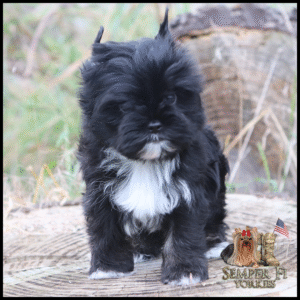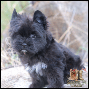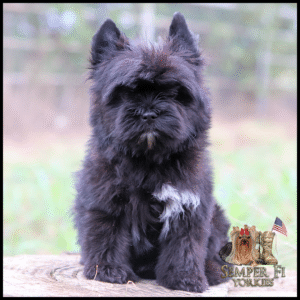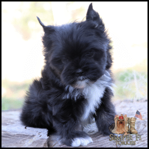 Skywalker is a very (VERY) dark traditional boy. He is the smallest in the litter and has the CUTEST personality. He prances about like hes 10 pounds. And who can resist that adorable face?! Seriously — someone snatch this boy up before I keep him!