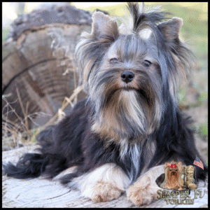 Pende is a beautiful traditional girl with an amazing coat and big, expressive eyes. Like almost all of our dogs, she was born here and comes from our breeding. In fact, all but three of our dogs are from our lines — a testament to my belief in the quality of my dogs and my breeding. She comes from Opha Mae and Blade. She was health tested and carries parti and chocolate, so we’re thrilled by that! She has such a sweet personality, just like her mama, so we expect her future puppies will have the same amazing personality.