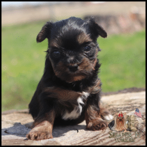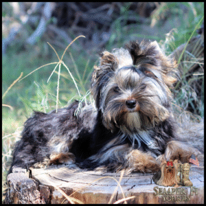 Pende is a beautiful traditional girl with an amazing coat and big, expressive eyes. Like almost all of our dogs, she was born here and comes from our breeding. In fact, all but three of our dogs are from our lines — a testament to my belief in the quality of my dogs and my breeding. She comes from Opha Mae (my lines) and Coda (my best friend’s lines) so she definitely carries chocolate and parti. I haven’t sent her health test off yet (but will before she is bred) though her parents are genetically sound. Given her lineage, we expect nothing but amazing puppies from her when she is of age to breed.